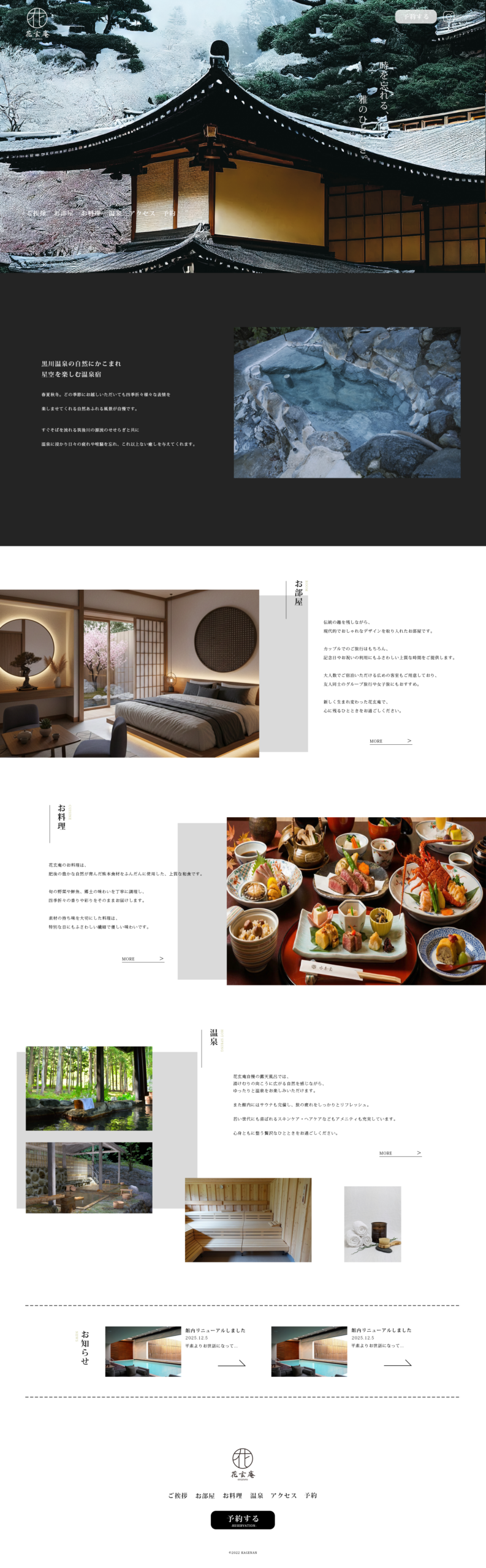 デザインでは、余白とタイポグラフィを軸に構成することで、静けさや上質さといった旅館特有の価値を視覚的に表現しています。